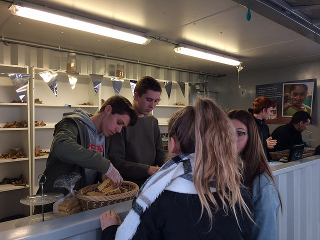 Business unit 2 van 5 MMb nam op dinsdag 6 november de box op de speelplaats even over voor het eerste allereerste verkoopmoment van hun klas in het kader van Project (bedrijfseconomie). 230 zelfgemaakte wafels vlogen “het luik” uit dus de heerlijke wafels waren “in no time” uitverkocht. En zo kwam aan een lange voorbereiding met activiteiten zoals brainstormen, plannen, …