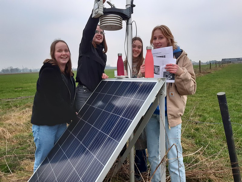 Vlinder 18 is de naam van één van de 2 weerstations die we vanuit de scholen van Bree beheren. De regensensor van vlinder 18 had een calibratie nodig. Een ideale job voor Sien, Katrien, Lotte en Mirthe (allen 5WWb), en zodoende werd na school de fietstocht richting de velden van Tongerlo ingezet. Calibreren moet je leren, het is soms een …