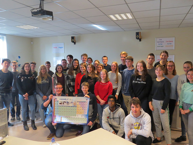 Woensdag 14 november was het weer zover. De eerste ronde van de Vlaamse Chemie Olympiade! Maar liefst 3 461 leerlingen verspreid over 258 Vlaamse scholen namen deel aan deze eerste ronde. Ook SAB was talrijk vertegenwoordigd met 32 enthousiaste chemieliefhebbers uit het vijfde en zesde jaar. Twee uur lang konden deze leerlingen zich het hoofd breken over 25 chemie-vraagstukken. Afwachten …